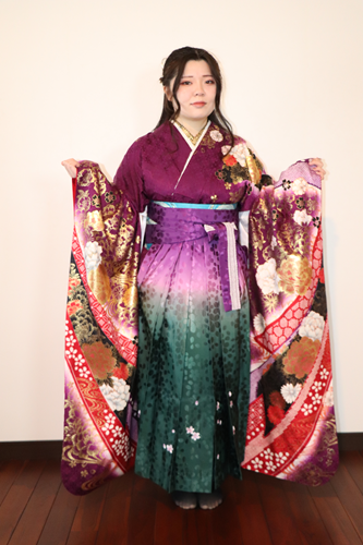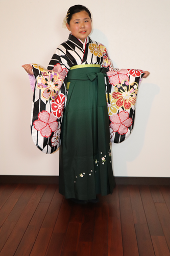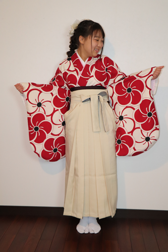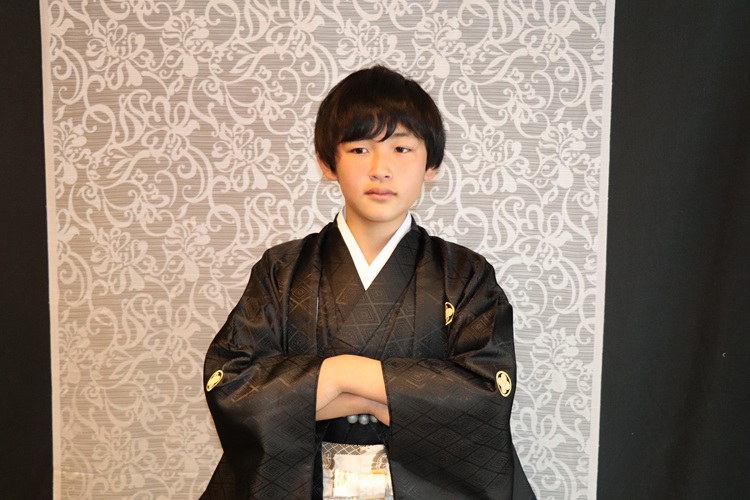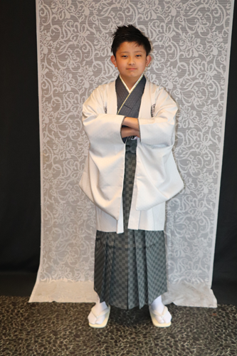 男の子は紋付袴と女の子は二尺袖の着物と袴姿での晴れ姿です