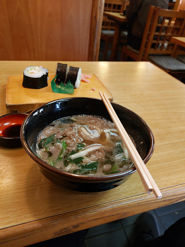 でも、1700円です、肉うどんとレタス巻きです