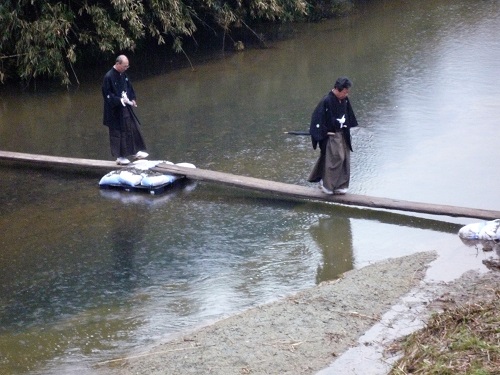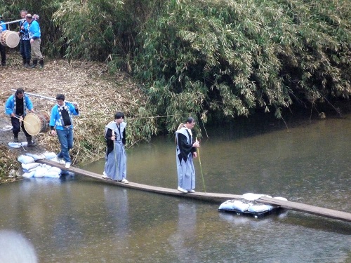 ハラハラドキドキお祭りです・・おまけに雨が 着物姿で橋を渡られますここまではオッケーでした・・・・・ま、仕方がありません、なんせ長い棒をもたされています、きものはかえってまいりましたがやっぱり・・・・・トホホでした