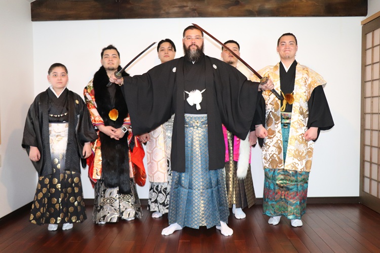 甲賀市のビックダディー登場です 昨日は大変忙しい日となりました お宮参りが二件と結婚式の参列に訪問着の着付けと 七人兄妹のパパさんです・・・家族をしっかり守っておられました みなさん、刀を持つといい顔になりました 楽しい時間ありがとうございました